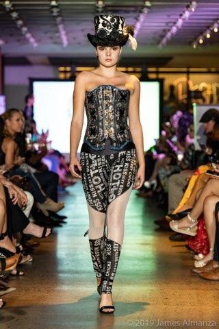 “So this is a mashup of gothic and steampunk. My collection will tell my clients story of her week. From going to work, out for the weekend, and a classy evening out. I design for me 10 years ago. I make what I would have worn.”